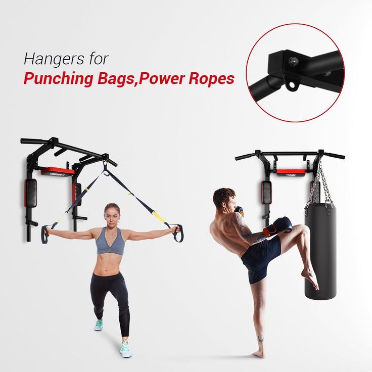 Functions: Pull-up bar, dip station, punching bag hanger, suspension trainer anchor